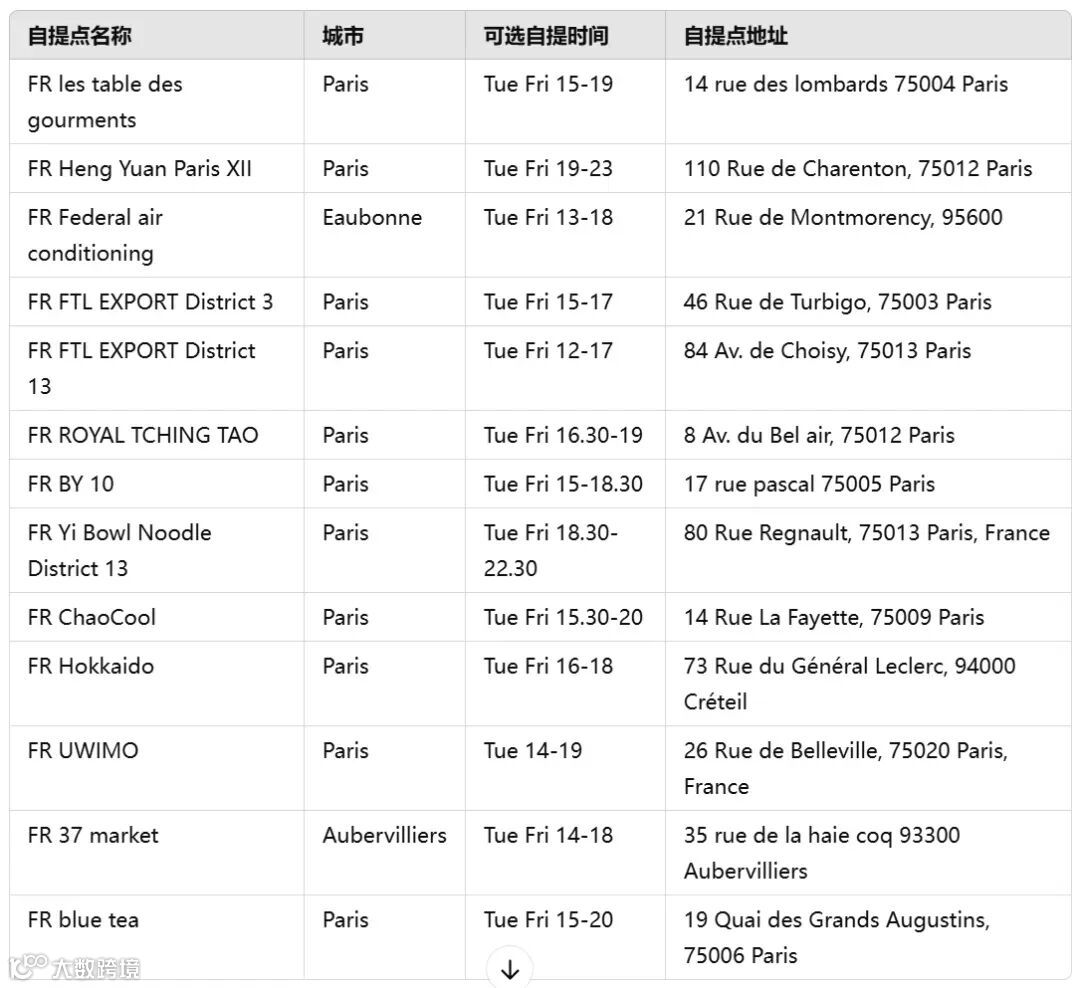 下单指定页面商品,法国订单配送可最快享受次日达,非指定页面商品不能自提,且配送时效为3天以上