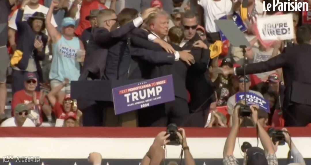 【7月13日星期六晚上,前美国总统唐纳德·特朗普在宾夕法尼亚州巴特勒市的一次竞选集会上遭遇了暗杀未遂事件。当特朗普刚开始他的演讲时,现场突然响起了多声枪响。特朗普的脸上出现了血迹,他被保镖紧急撤离。这一事件可能会对即将到来的美国大选产生重大影响。特朗普是共和党总统候选人,计划在11月的选举中再次竞选总统。】
