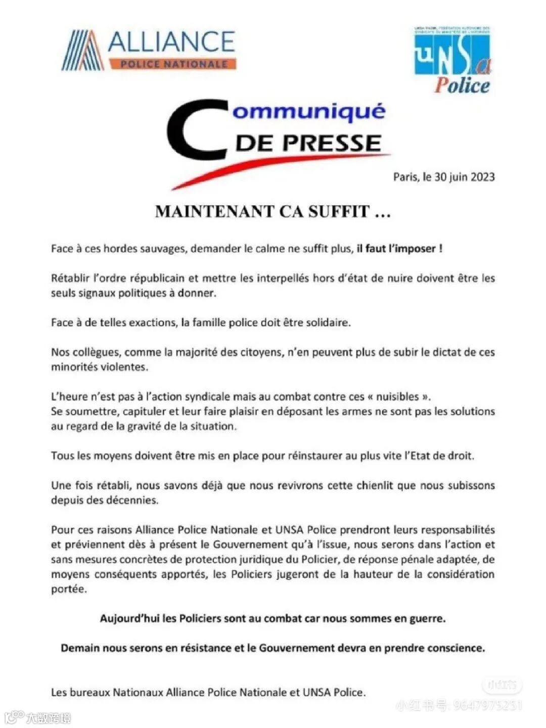 而平时一直受到左派压力的警察协会,这一次竟然也出人意料地硬气了起来,郑重颁布了公告以反对最近的暴乱。