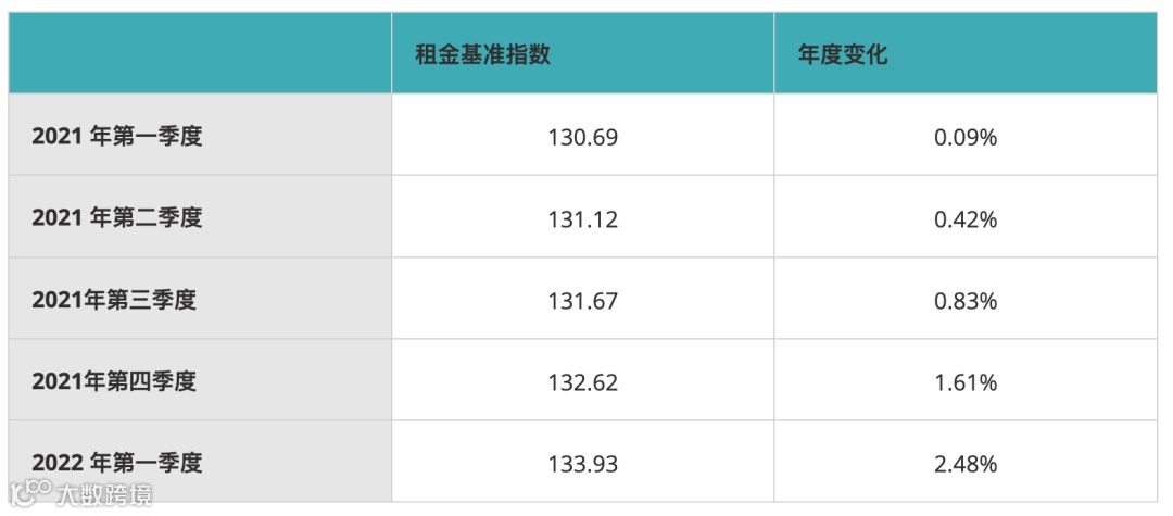 此图是2021年四个季度和2022年第一季度法国房租的上涨变化👇