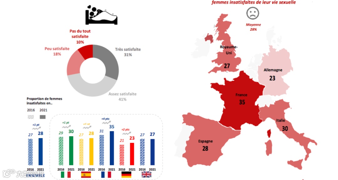 近期,IFOP(法国舆论研究所)公布了一项关于欧洲女性性生活的调查结果。结果显示,法国再次成为性满意度最低的国家。重点词——“再次”……