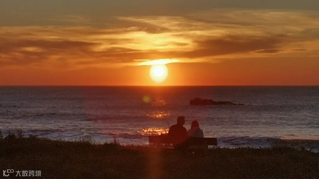 拂晓的时候天上的云峰峦如聚,仿佛丹霞地貌跑上了天。由于纬度问题,这里冬季的日出和日落方向的夹脚非常小,在同一个地方几乎稍稍偏一下脑袋就能看到日出和日落。大部分时候,每天来看日出日落的都是同一批人,我想,他们一定也很是那种在自己的小日子里过得熠熠生辉的人吧。