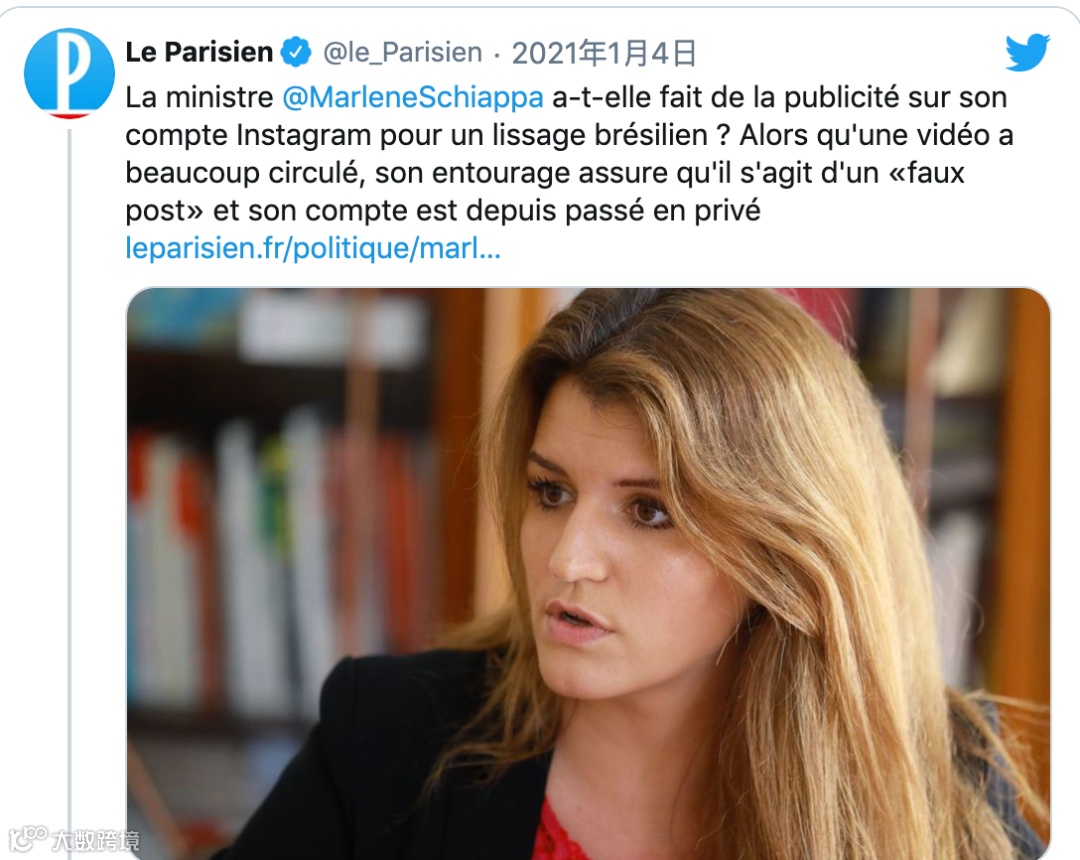 法国公民事务部长最近在ins上晒出一段自己展示秀发的视频,附文:感谢理发师修复我的头发,让我能在每天早上节省出宝贵的时间(卷发的人如果不用发卡总会被吐槽略显狂野并且没有打理头发)并且@出自己的美发师👇