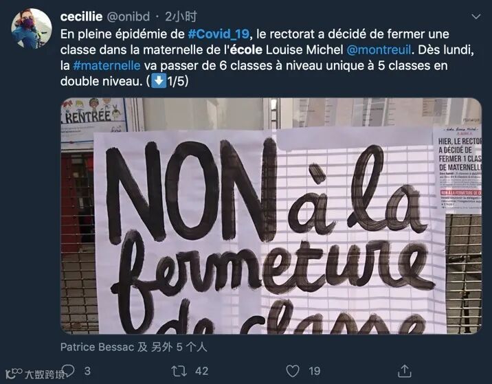 刚才巴黎93montreuil的一所幼儿园被查出新冠感染病例,其中一个班级被关闭,