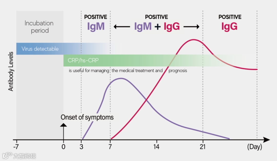 igG在感染一周后显现,阳性,igG在第三周为高峰值,之后逐渐稳定减弱,