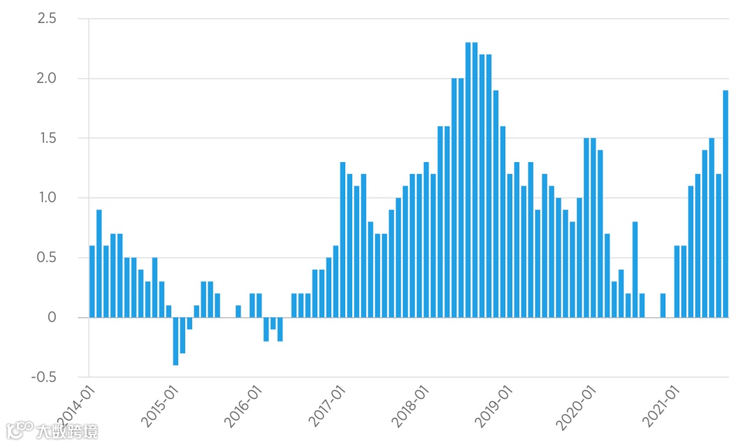 今天上午INSEE公布了法国🇫🇷新通胀数据:物价在一年内上涨了 1.9%,此前一年上涨了 0.6%。