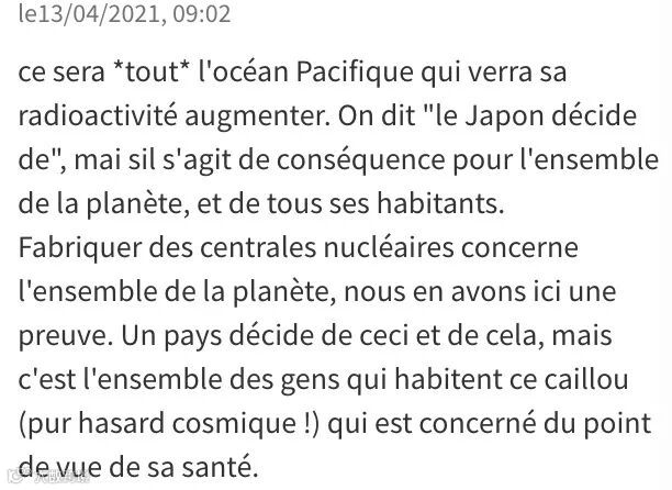 整个太平洋的放射物都会增加,日本的决定会波及全球;核电站的制造和全世界都是有关联的,而不是日本一国就能决定的,尤其是从健康的角度出发。