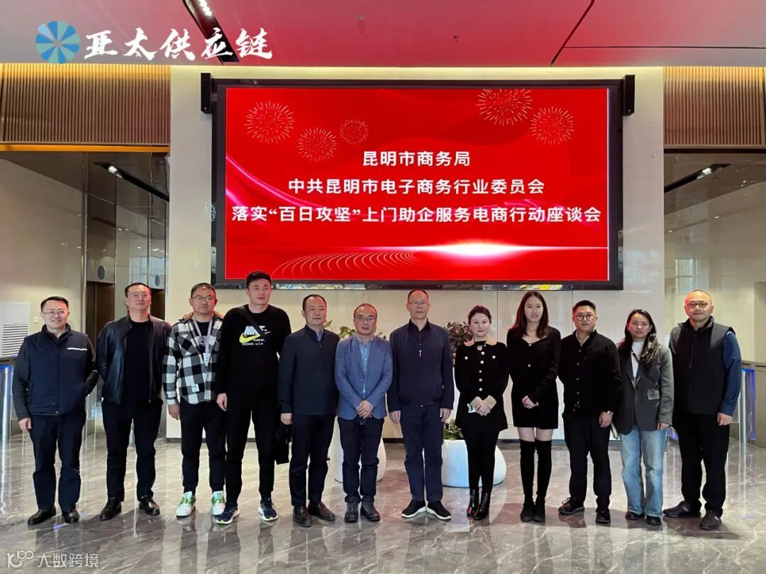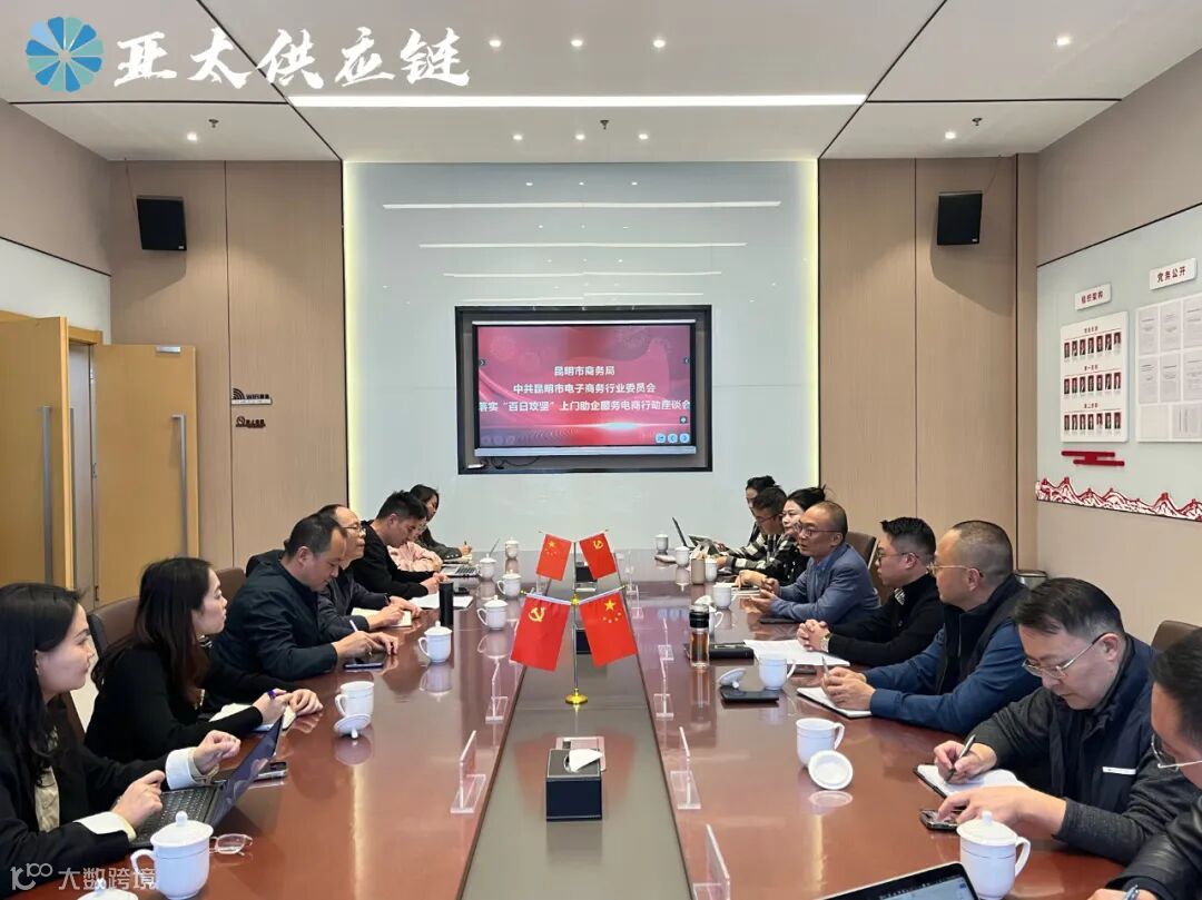 11月14日,昆明市商务局、中共昆明市电子商务行业委员会携手昆明市跨境电商协会,莅临亚太集团,对亚太供应链管理服务(云南)有限公司(以下简称“亚太供应链”)调研座谈。此次调研旨在深入了解企业需求,推动跨境电商行业发展。集团董事肖勇,集团副总裁、亚太供应链副董事长李海铱,亚太供应链董事总经理谢鑫及有关工作人员陪同介绍。