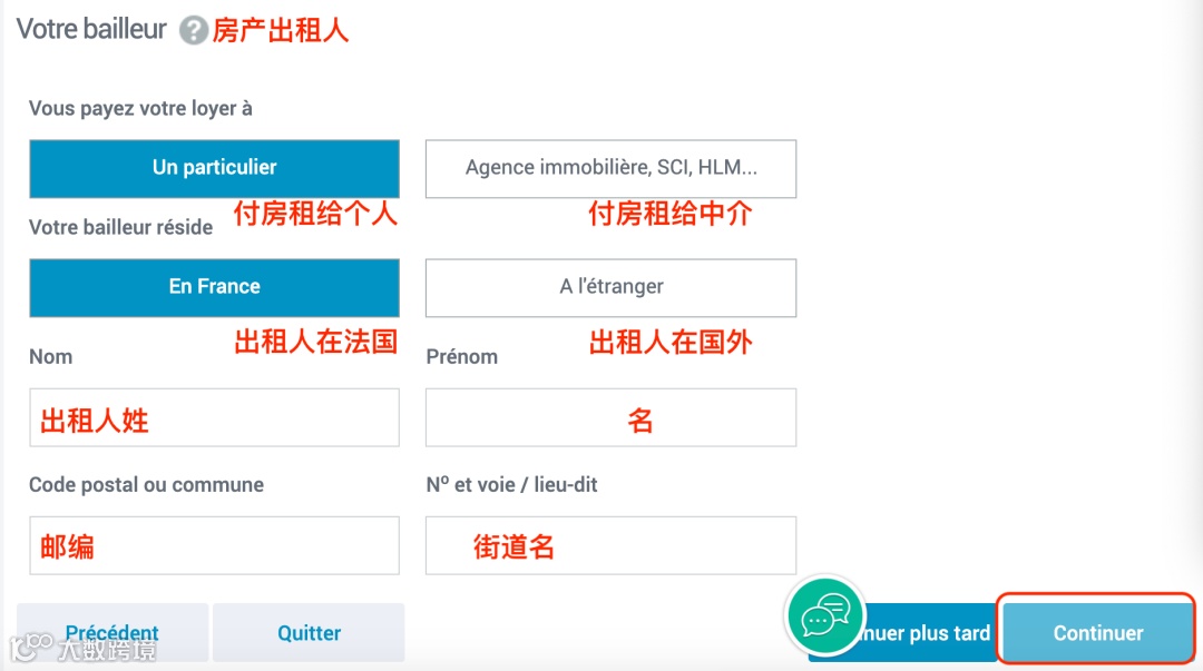 - 房东填写的Attestation de loyer