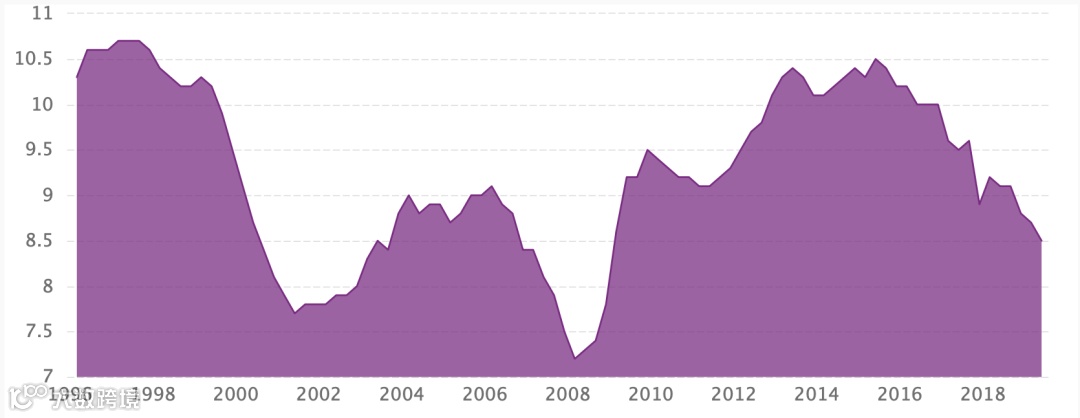 法国1996-2018年平均失业率