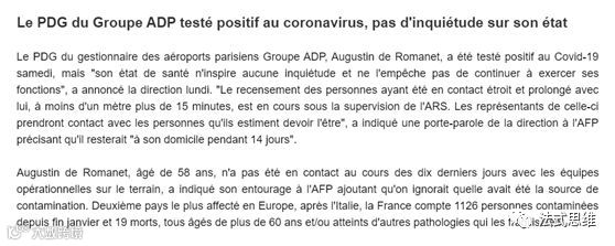 不仅仅是法国的百姓备受困扰,企业家同样难逃新冠病毒的侵袭,就在今天,巴黎机场集团PDGAugustin de Romanet也被确诊为新冠肺炎……