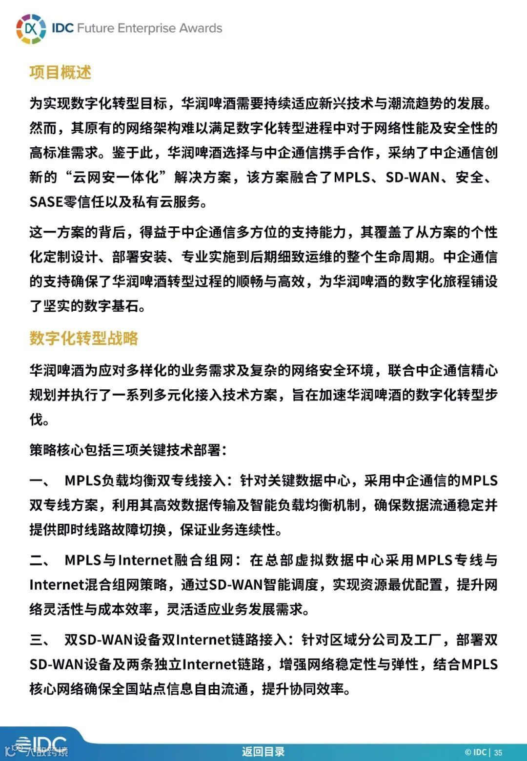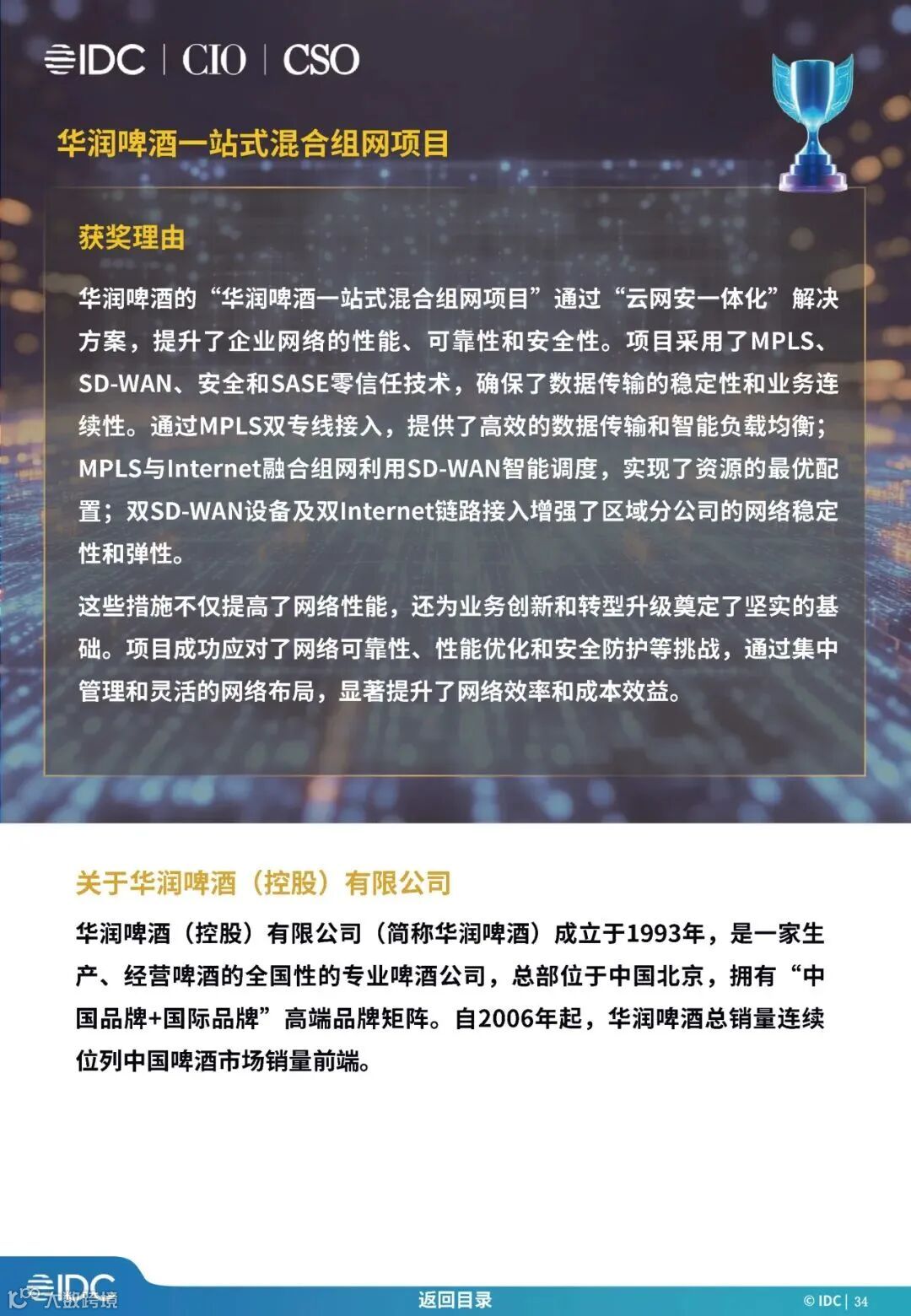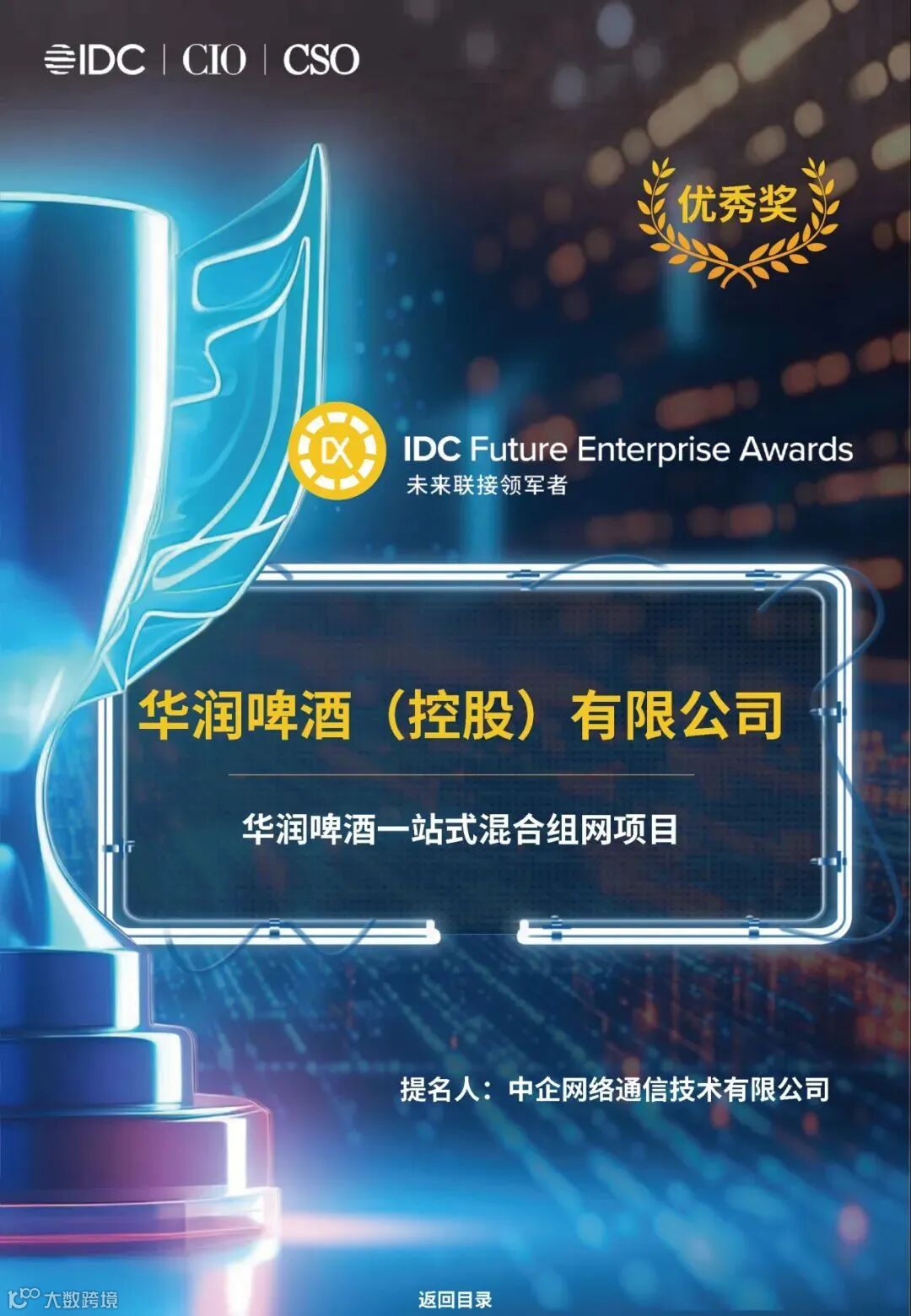 中企通信携手华润啤酒入选IDC中国《2024 第九届 IDC中国未来企业大奖年度金典》