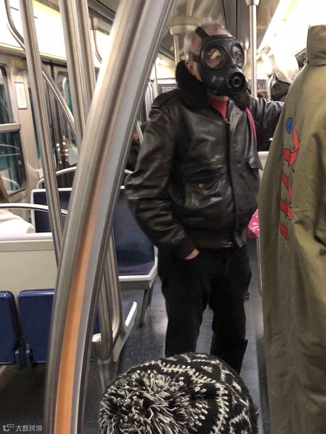 看着这位sir上个地铁犹如进入生化实验室,连防毒面具都用上了。
