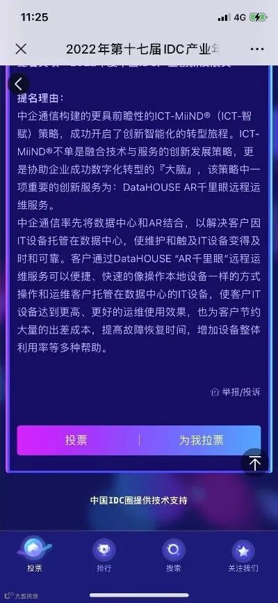 为中企通信提名奖项进行投票