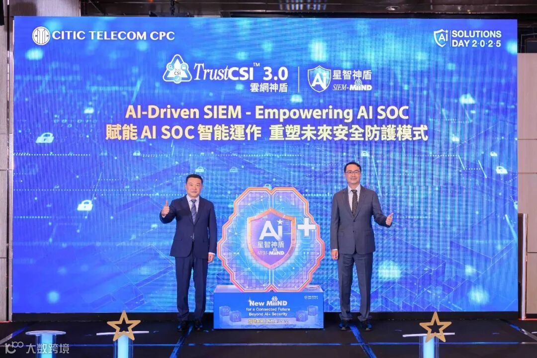 香港,2025年10月15日 — 中信国际电讯集团有限公司(「中信国际电讯」,香港交易所股份代号:1883)全资拥有的中信国际电讯(信息技术)有限公司(「中信国际电讯CPC」) 致力于创新发展,实现数据赋能新模式,推动技术与数据双轨发展。中信国际电讯CPC进一步延续AI+创新理念,推出自主研发的「SIEM-MiiND星智神盾」- 数智化安全信息与事件管理平台,利用大数据与智能化技术跃升安全运营中心(AI SOC)整体效能,跨越AI+ 安全,构筑智链未来的数智新纪元