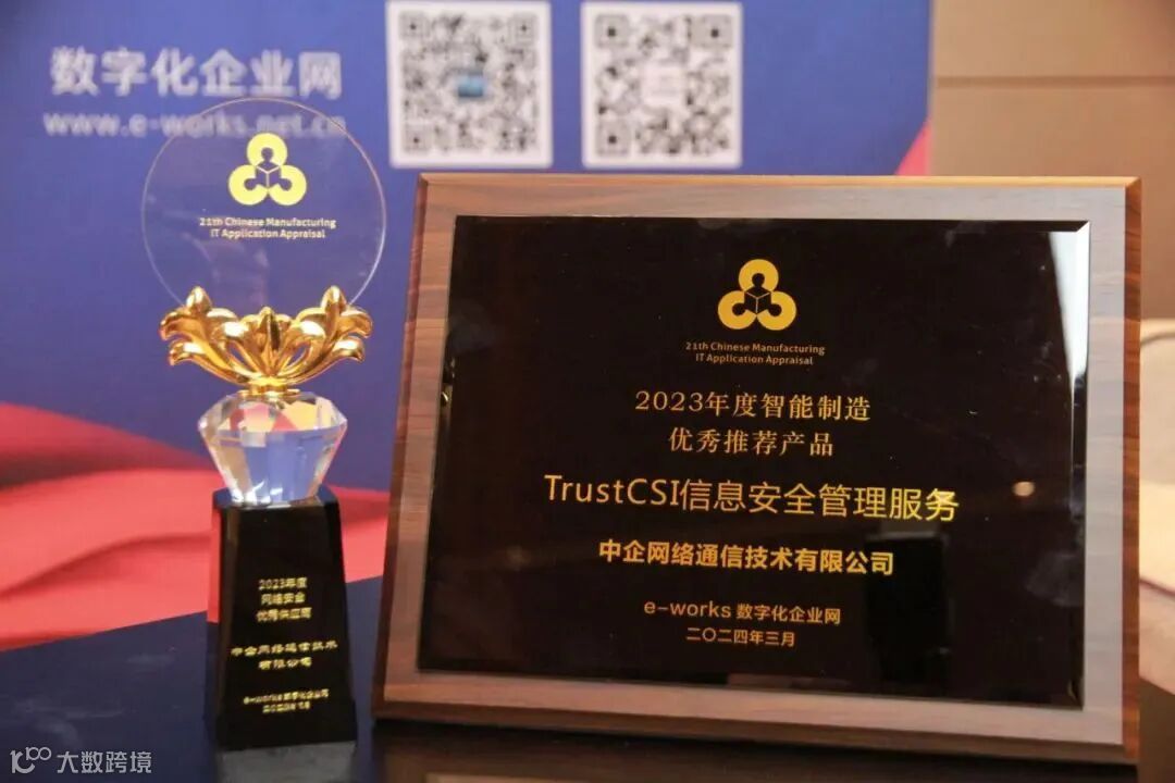 中企通信则凭借近年来在安全领域的创新实践,以前沿产品及专业服务,获评“2023年度网络安全优秀供应商”、TrustCSI信息安全管理服务荣膺“2023年度智能制造优秀推荐产品”!