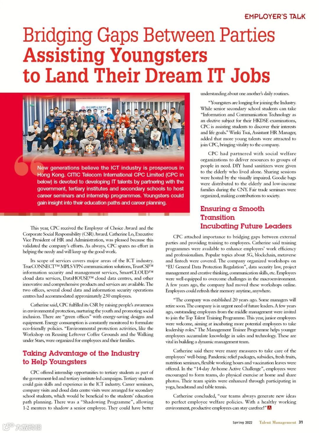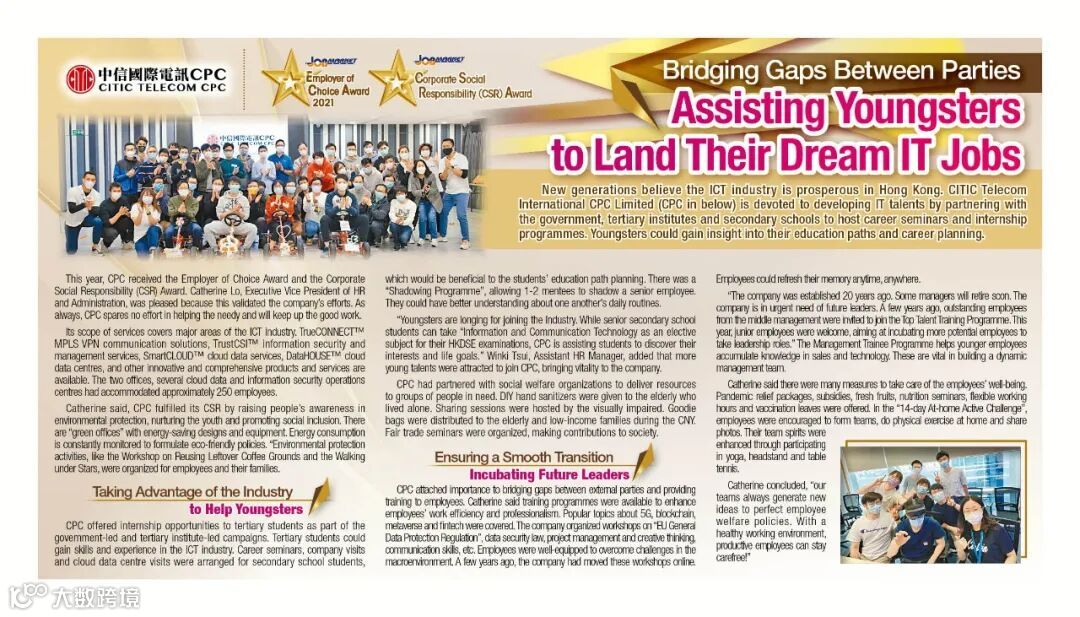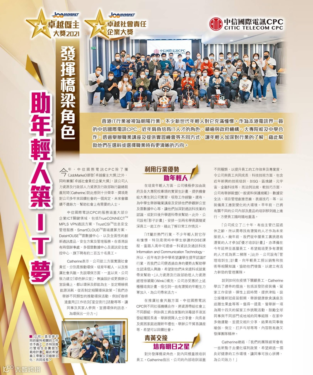 中信国际电讯CPC非常荣幸获得由 JobMarket 颁发的【卓越雇主大奖2021】及【卓越社会责任大奖】!