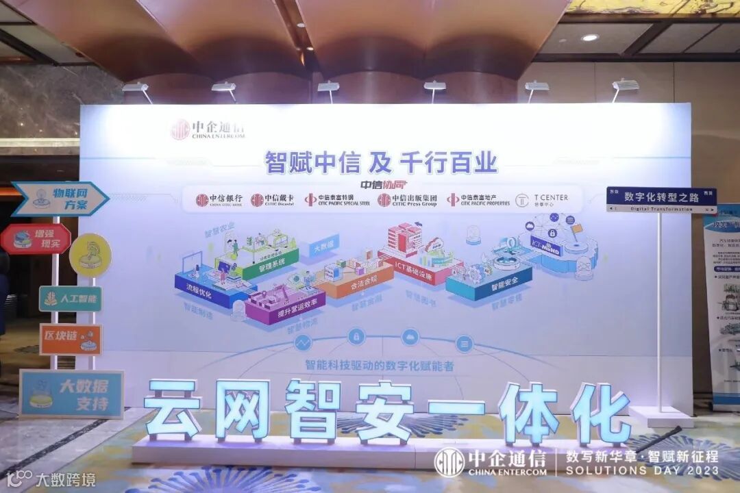 值得一提的是,本次活动上还设置了智赋“云网智安”、智赋“一带一路”、智赋“中信及千行百业”三大特色展区,以“全明星”阵容展示了一揽子硬核产品、创新科技以及新应用和新场景,打造科技沉浸式体验。特别是在智赋“中信及千行百业”展区,中企通信联合母公司中信国际电讯CPC协同中信集团兄弟公司、行业客户、生态伙伴,综合展示了其在数字技术、数字基础设施、数字应用以及在绿色低碳、可持续发展等领域的探索与实践。同步呈现的还有中企通信在千行百业中的实际应用和解决方案,为与会者带来了近距离体验“云网智安”一体化服务赋能千行百业的机会。
