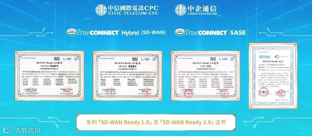目前,中企通信数智化能力已荣获多项殊荣,包括:在电信联盟Carrier Community主办的“CC-Global Awards 2022 国际专业大奖”中荣获“最佳创新增值服务商”大奖、在“第三届阿里云磐久智维算法大赛”天池大赛荣获全场总亚军、山东省大数据局主办的“山东省第三届数据应用创新创业大赛”省级主赛场“行人重识别以及追踪”赛题中荣获决赛二等奖;智能化网络服务-SD-WAN基础服务、SD-WAN增值服务及SASE服务齐齐通过更是行业权威测试认证,获得中国信通院(CAICT)中国通信标准化协会算网融合产业及标准推进委员会授予“SD-WAN Ready 2.0”证书。