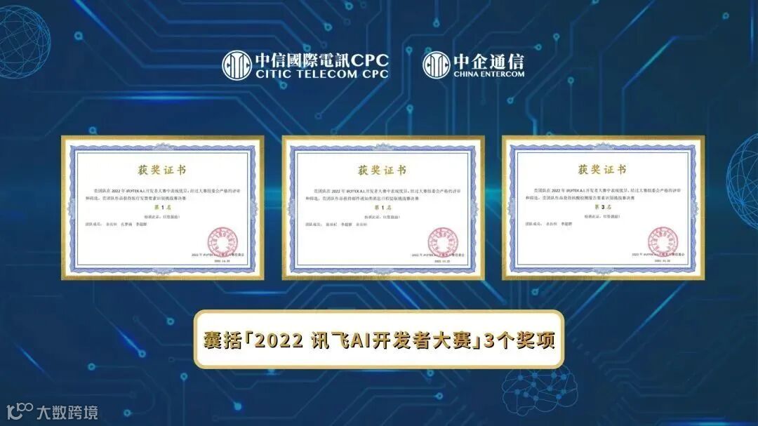 此外,中信国际电讯CPC数据科学及创新团队在国内首屈一指的人工智能比赛「2022讯飞AI开发者大赛」创下佳绩,囊括了3个主要大奖,「邮件通知类信息日程提取挑战赛」第一名、「医疗发票要素识别挑战赛」第一名及「核酸检测报告识别挑战赛」第三名,充分彰显团队专业高水平的创新能力。