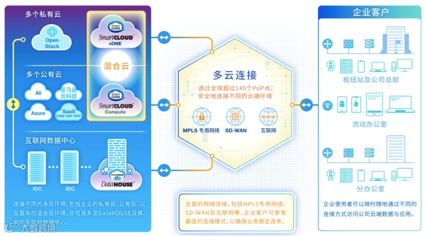 一边拉拢各方创新科技,将AI、AR、大数据等创新技术,融入到“云网安”ICT服务中,为企业客户提供更加智能化的上云解决方案。