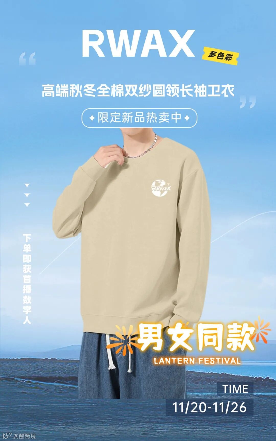 圆领长袖卫衣66014/立体硅胶标 男女同款