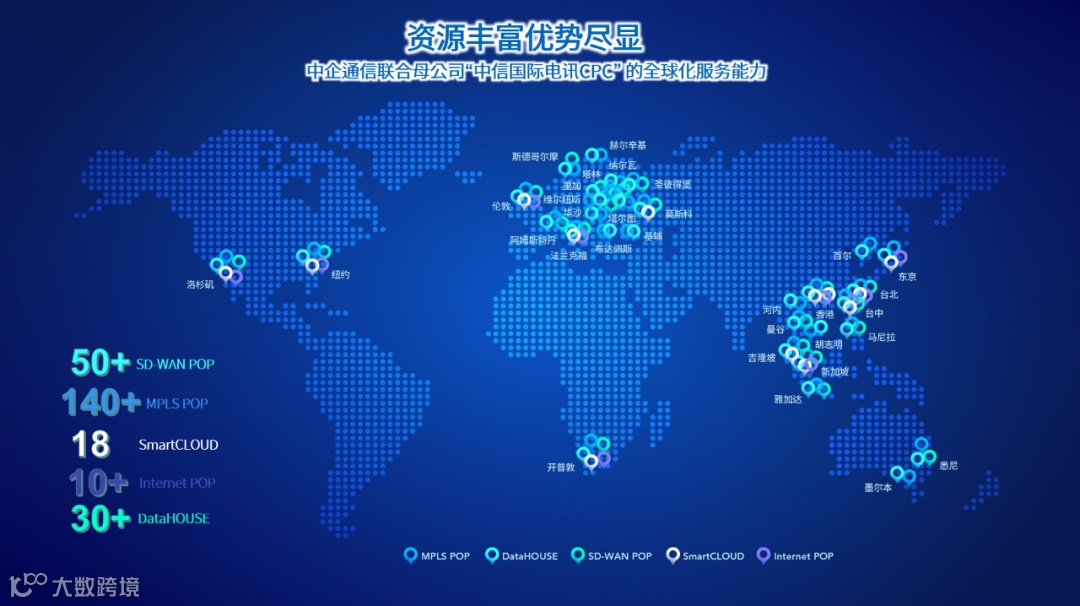 中企通信作为国内较早成立的一站式ICT服务提供商,深耕企业级市场20余年,致力于打造创新、高品质、可信赖的一站式信息通信技术(ICT)服务。联合母公司中信国际电讯CPC,率先在全球130多个国家和地区布局了充沛的ICT资源,包含140多个服务据点、完全自建并自主管理近50个SD-WAN服务网关,30多个数据中心……为“一带一路”沿线地区、粤港澳大湾区等经济战略城市的企业客户实现完备交付能力。
