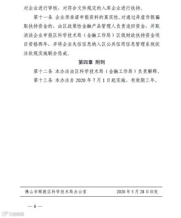 为提高我区政策性金融产品的针对性,支持符合我区产业发展方向的优质企业融资,日前,佛山市顺德区科学技术局发布了《顺德区政策性金融产品扶持企业库暂行办法》。广东顺高投融资担保股份有限公司、广东顺德高新创业投资管理有限公司将落实区政策性金融产品扶持中小微企业“白名单”工作,将从2020年7月1日起,为已入库企业提供顺德区支持企业融资专项资金(转贷资金)、顺德区企业信贷风险补偿金等政策性金融产品业务的受理扶持,帮助中小企业解决融资难题。