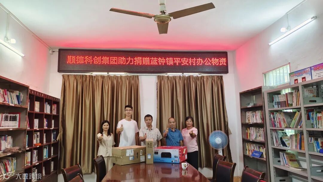2022年6月受特大洪灾影响,平安村受灾严重,顺德科创公司捐赠了一套办公电脑及打印机用于平安村委灾后复工,公司领导也探望了受灾严重的困难群众。另外,积极发动集团同事为其捐款,助其重建家园。