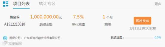 产品简介:我司担保的100万元P2P产品,年化利率为7.5%,期限1个月。