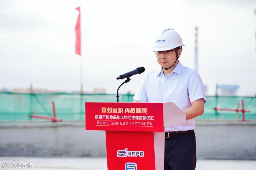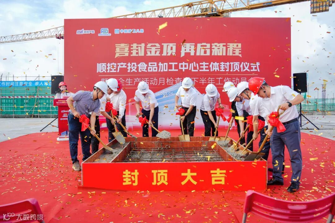 6月27日,顺控集团下属顺控产投公司投资建设的现代农业与食品加工全产业链牵引性项目——顺控产投食品加工中心主体封顶。该项目作为湾区食品稳产保供和推动顺德三产融合高质量发展的重点项目,从项目开工到主体结构封顶仅用了7个月,体现了政企协同的“顺德速度”和“顺控效率”,也为顺德食品加工产业升级按下“加速键”。顺德区国资局副局长冯家辉,顺控集团党委书记、董事长黎颂泉,副董事长、总裁林育成,以及顺控产投公司董事长武耀等相关部门和企业代表参加项目封顶仪式。