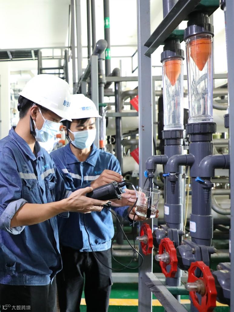 工作人员在水处理车间进行操作