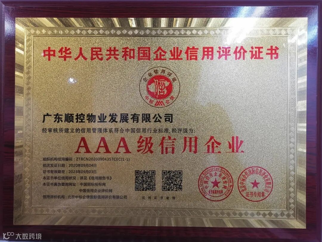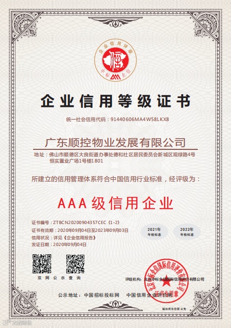 此次获得AAA级企业信用等级证书,是顺控物发公司发展过程中信用形象的重要标志,是公司履约能力、投标信誉、综合实力与竞争力的体现,也是对公司实力、信誉度以及诚信经营行为的肯定。