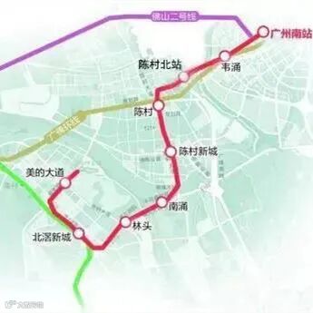 广州地铁7号线西延顺德段全长约13.45km,始于美的大道站,经过北滘、陈村新城、陈村,之后下穿陈村水道,进入广州境内韦涌,最后达到广州南站。该线路共设8个车站,1座停车场。其中,顺德境内的7座车站中,有3座是换乘站,将来可与佛山地铁三号线、广佛环线、佛山地铁十一号线等轨道交通换乘。