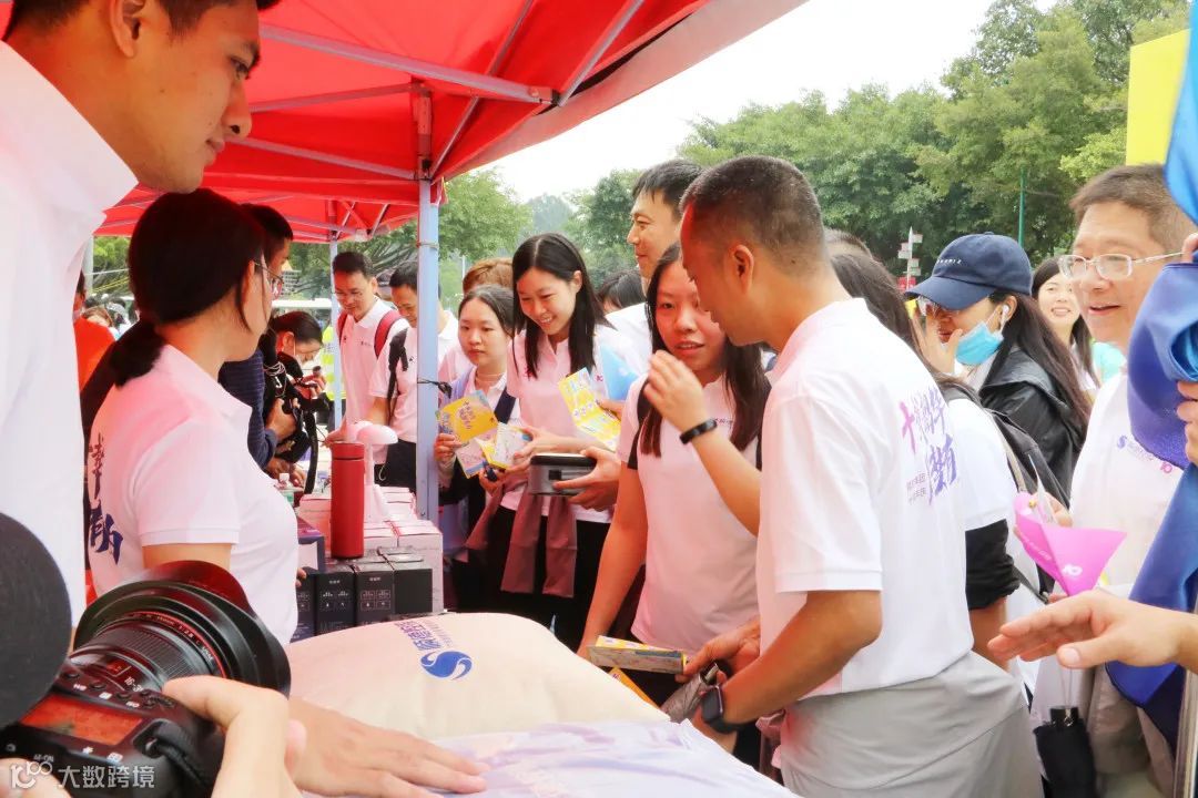 经过约2个半小时的徒步,大部分人员都带着“十载韶华 顺势有为”8个印章的打卡纸回到了主会场,并领取主办方为大家准备的抱枕、水杯等精美奖品。大家纷纷在留影板前合影,纪录下自己胜利的时刻。