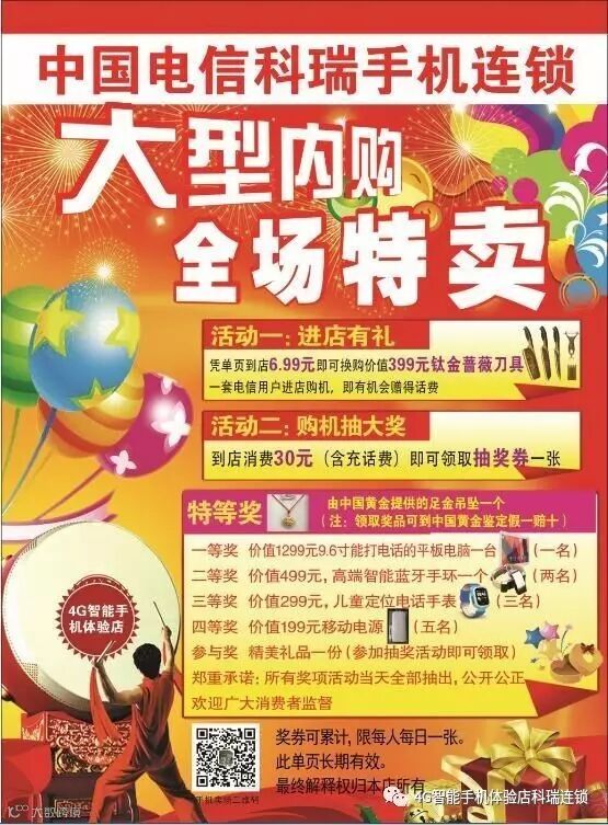 谁说:“天上没有免费的午餐”,国庆期间在中国电信购买手机免费送话费,流量卡,有精美礼品赠送,还有大型活动购机砸金蛋抽大奖: