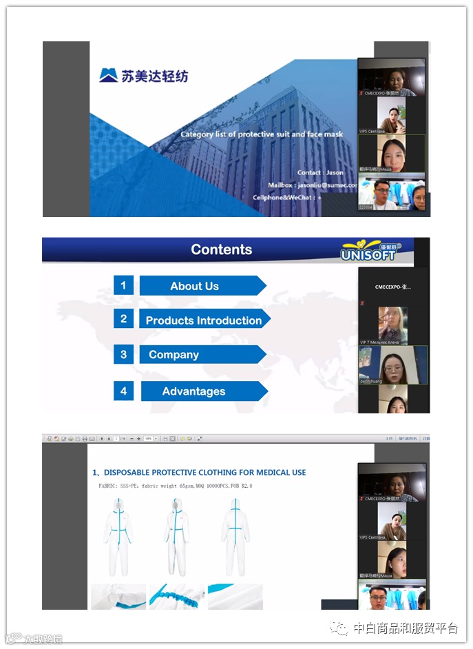 8月12日,国务院办公厅印发《关于进一步做好稳外贸稳外资工作的意见》(以下简称《意见》),提出15项稳外贸稳外资政策措施,其中有关贸易、产业的要求包括:发展贸易新业态新模式,拓展对外贸易线上渠道,支持中小外贸企业开拓市场,帮助出口企业对接更多海外买家。为了响应《意见》,彰显我国坚定不移地推进对外开放的信心决心,释放我国坚持经济全球化、加强国际经贸合作的积极信号,巩固中国制造竞争优势,打造我国防疫物资出口产业链,继8月31日成功举办第一场俄语区对接会后,今天下午,商务部外贸发展事务局和西麦克国际展览有限责任公司联合举办的第二场“中国-俄语国家防疫物资采购对接会”如约而至。本次对接会突出“精准把控、高效对接”主题,涵盖防疫物资行业原材料、生产及制造、设备及机械等领域,23家国内供应商和来自俄罗斯、白俄罗斯、乌兹别克斯坦、伊尔库茨克的45家采购商踊跃对接、深入交流,不少企业达成合作意向。