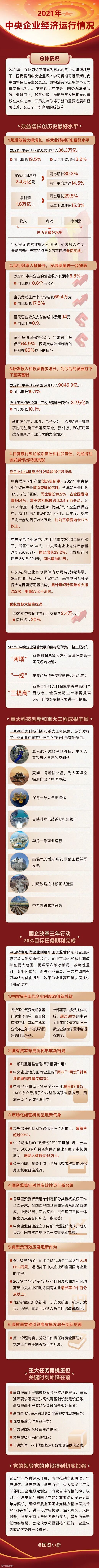 一图看懂2021年中央企业经济运行情况