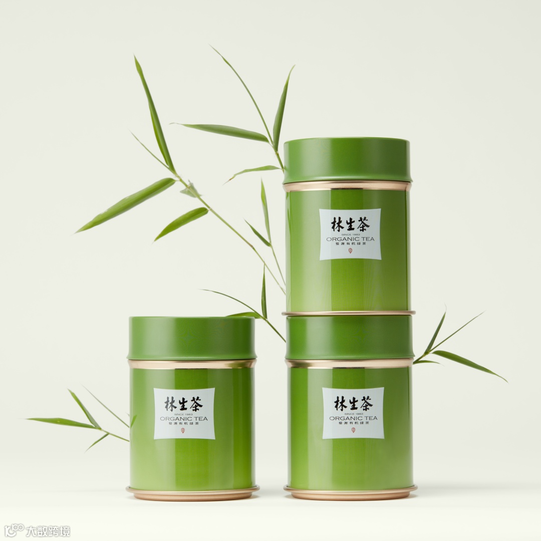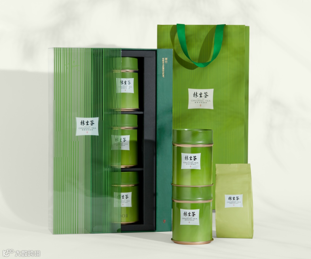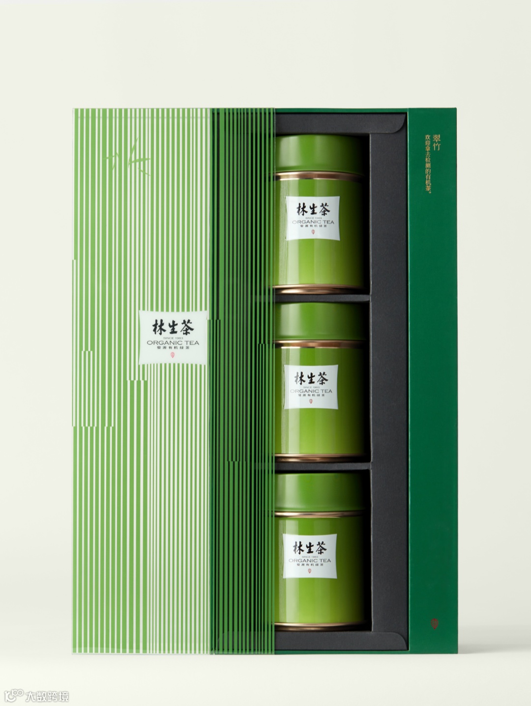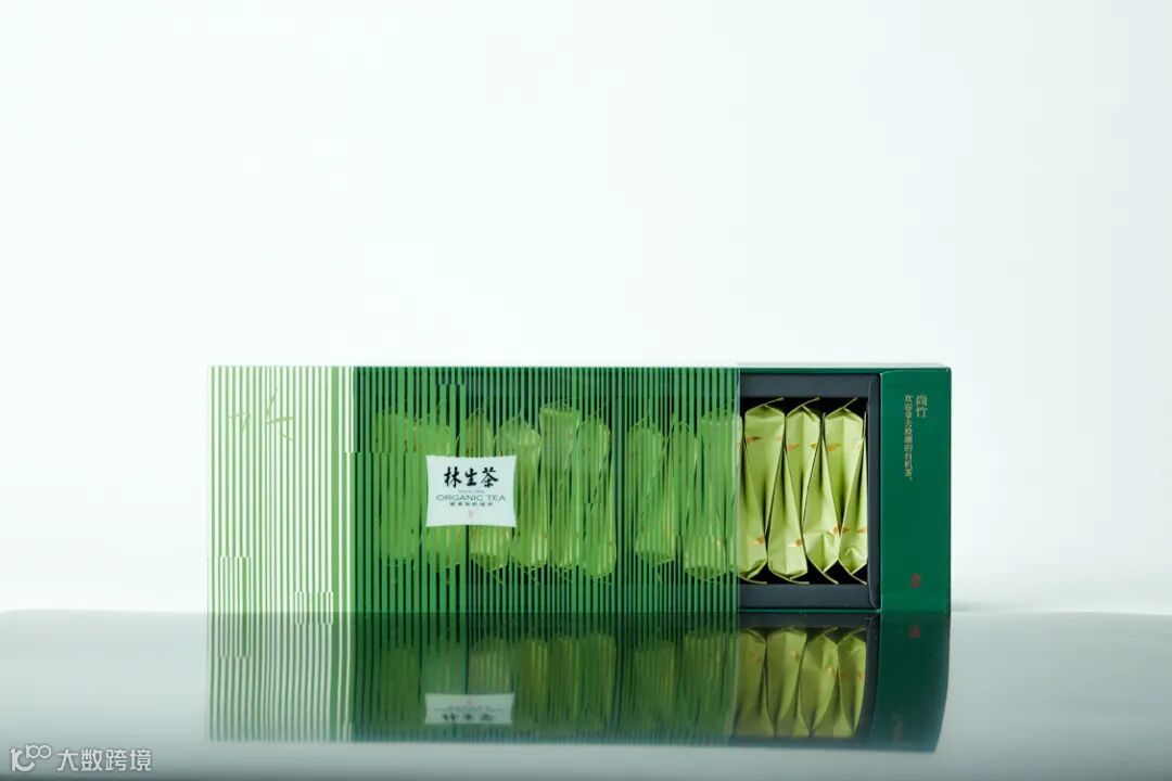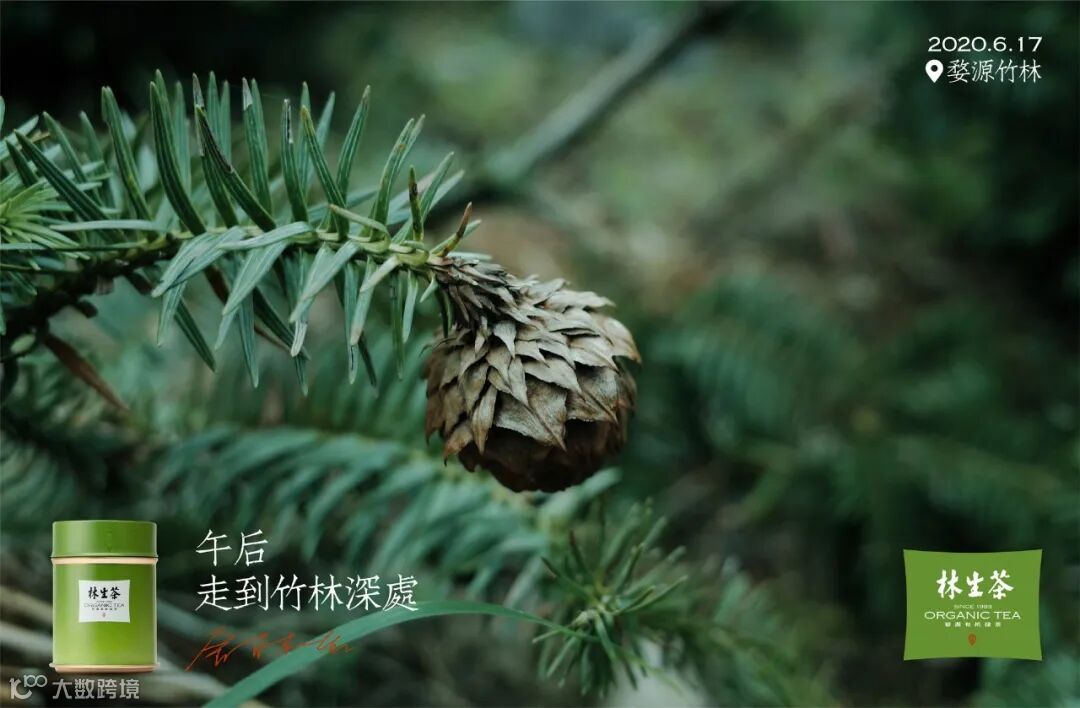 ▲ 林生茶自饮系列“尚竹”——品牌的“竹林纹样”和茶叶组成的“竹”字结合,让茶和⽵产⽣直接的关联。