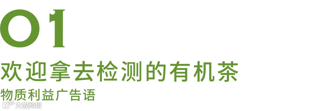 我们围绕“中国有机绿茶带头人”的品牌定位,以金总的视角与消费者对话,把他对自己产品品质的自信和敢用自己的信誉去向人们承诺品质的事实,用一句有力的挑战式广告话语喊了出来:
