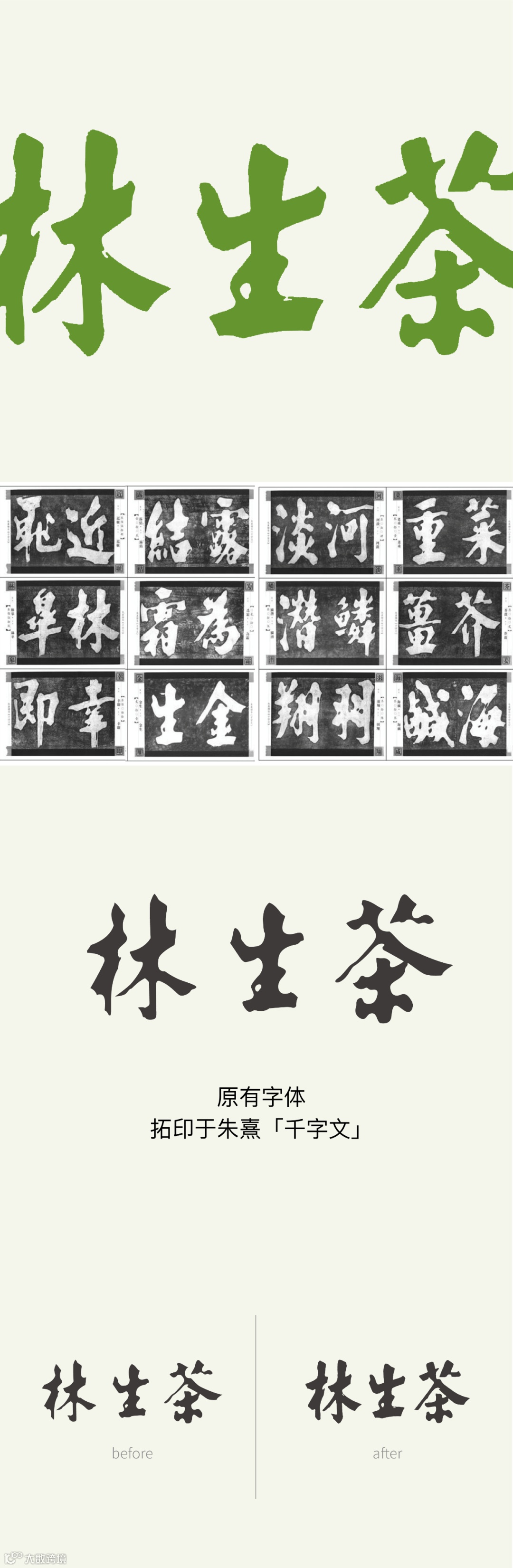 ▲ LOGO 字体上我们不破坏品牌 22 年的字体结构,结合朱熹《千字文》中的书法笔势都字体进行优化,让字体更容易标志化,快速传递品牌力。