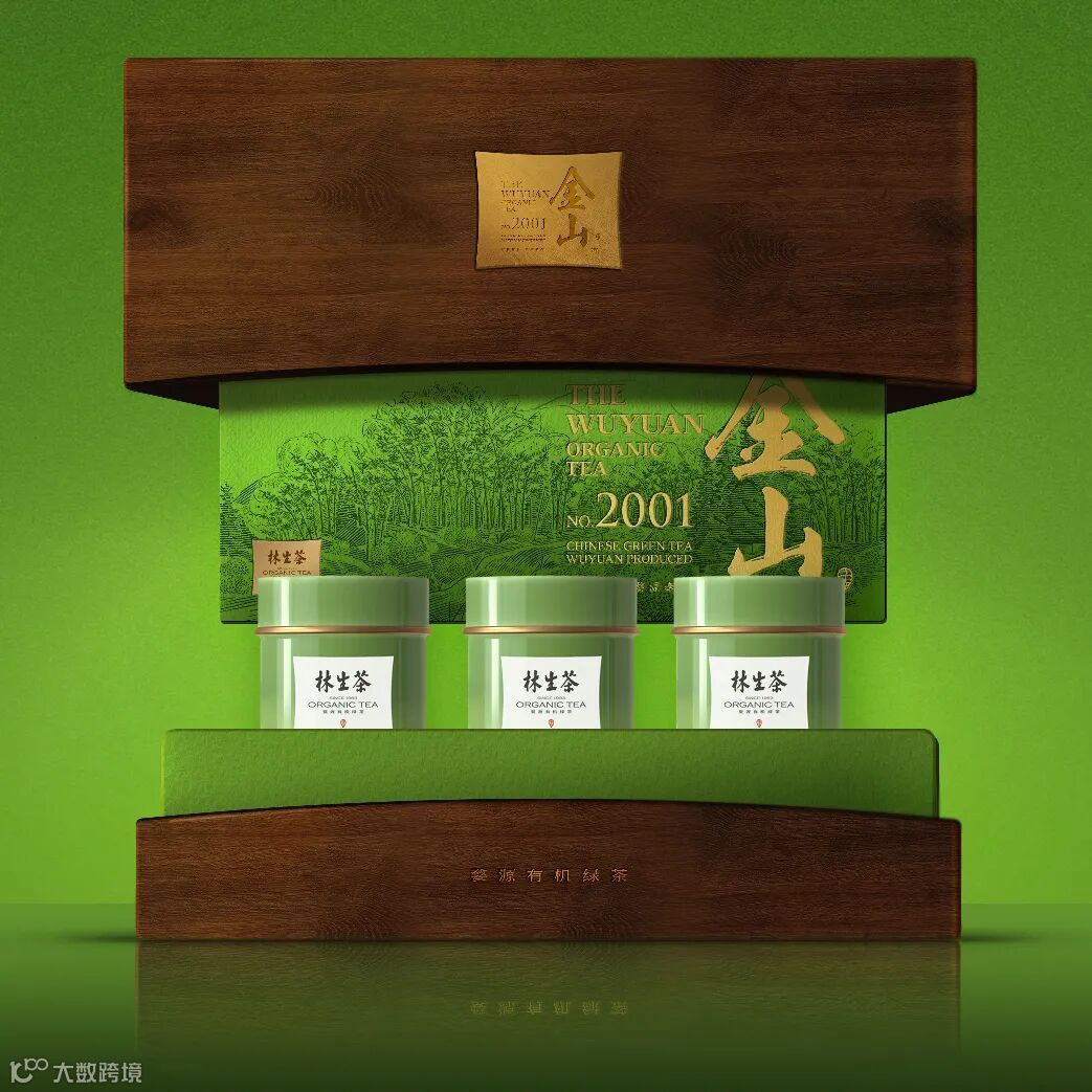 ▲ 林生茶高端系列“金山 2001” —— 产品命名 = 2001年江总书记视察的外部加持 = 金山2001,木质礼盒镶嵌的定制铜牌和古老封条的标签画面更营造出一种历史韵味,增加了产品质感和高端气质。