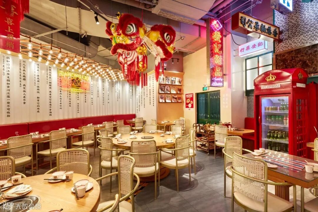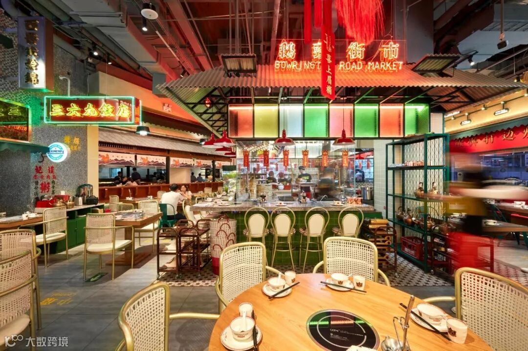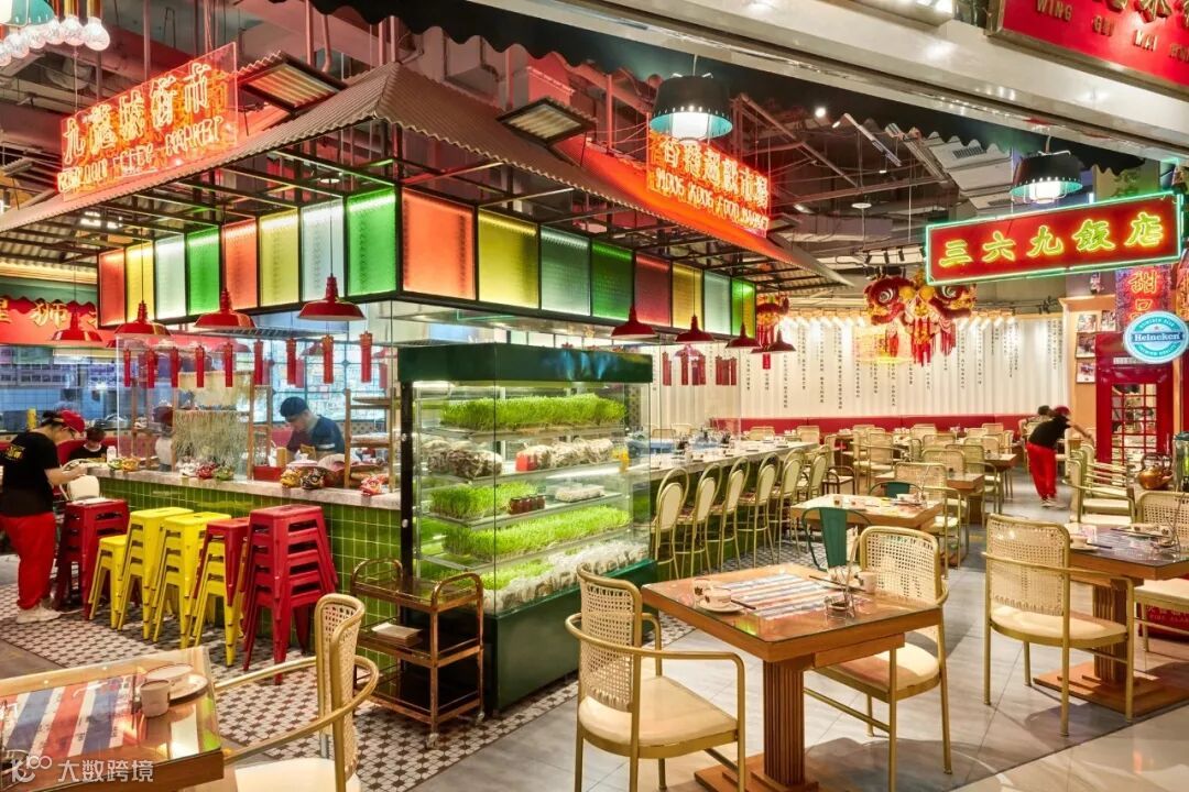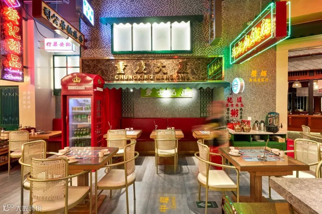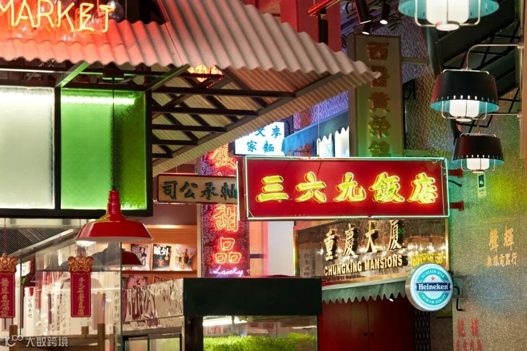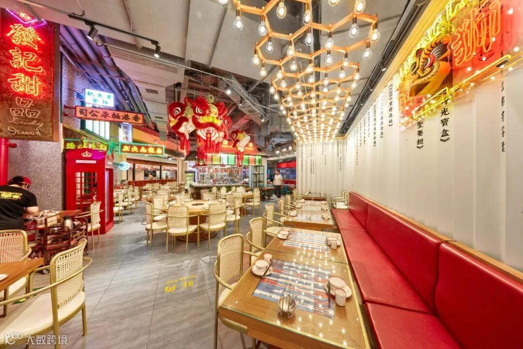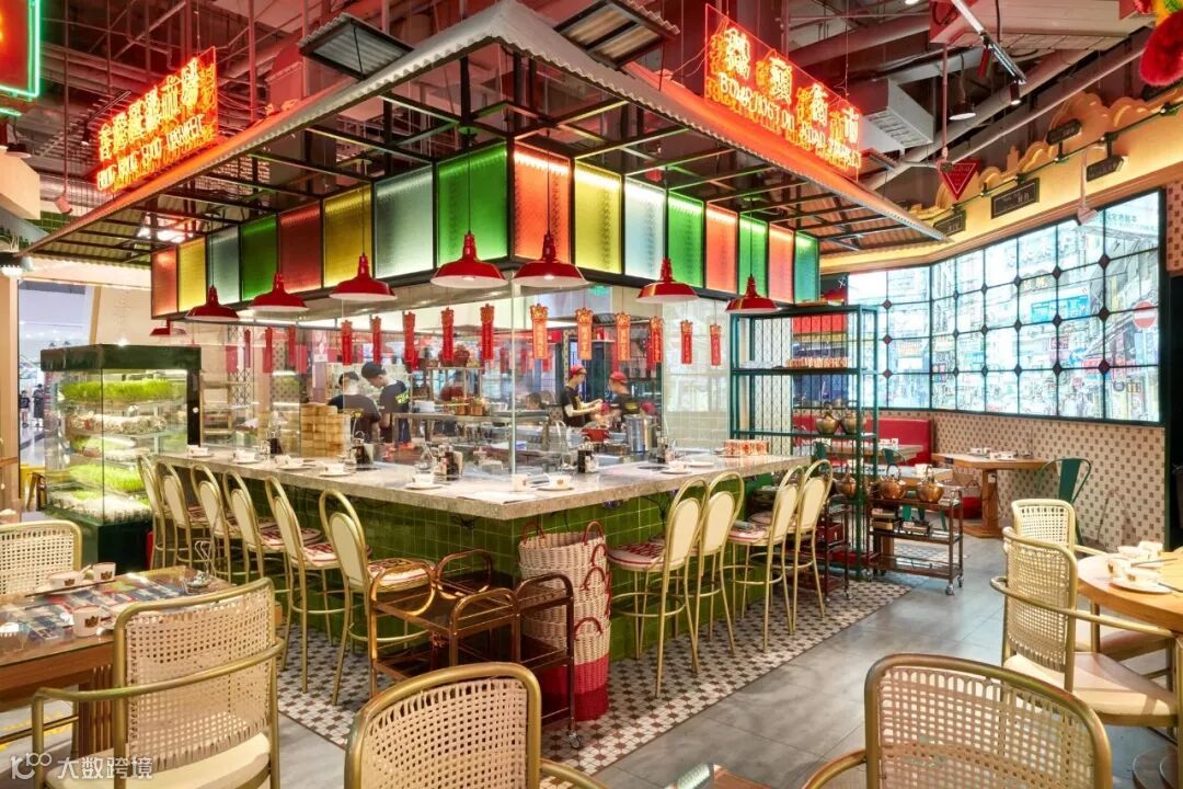 整个门店的中心区域,我们继续将霓虹灯符号结合明档进行了更深层的演绎,不论是“香港超级市场”还是“九龙城夜市”,这些经典的港式招牌都能将人带入文化的情境,同时结合透明的工作空间,也让整个门店更加充满了人气。