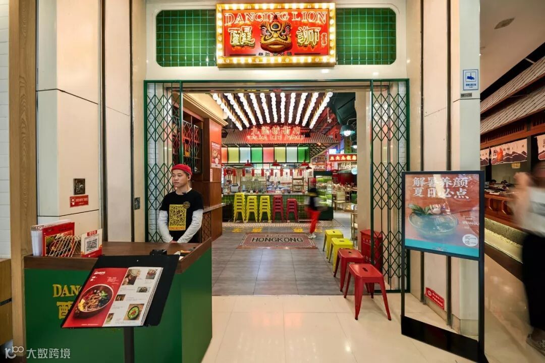 在一进门的门头位置,我们将醒狮的形象与霓虹灯结合,用几何图形和线条的现代语言进行表达,让这块霓虹灯招牌在商场的空间里成为了最亮眼的识别。