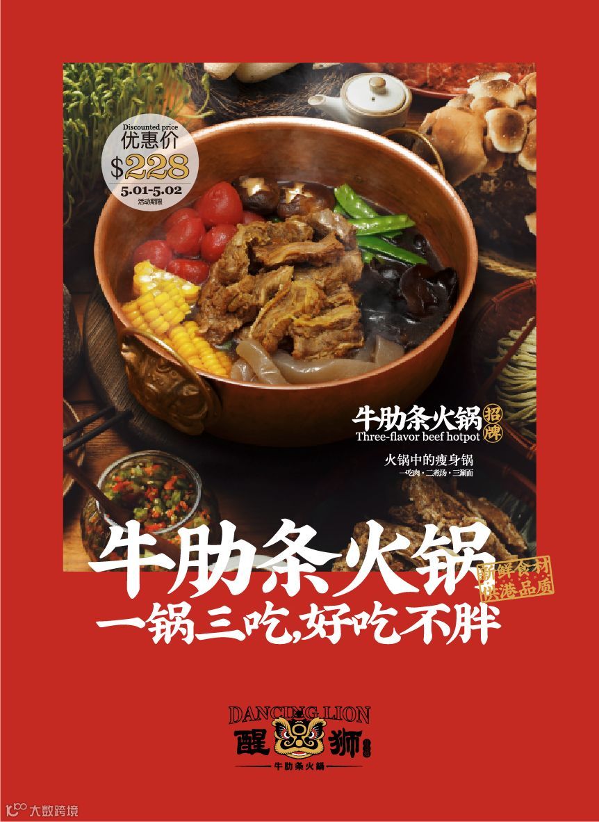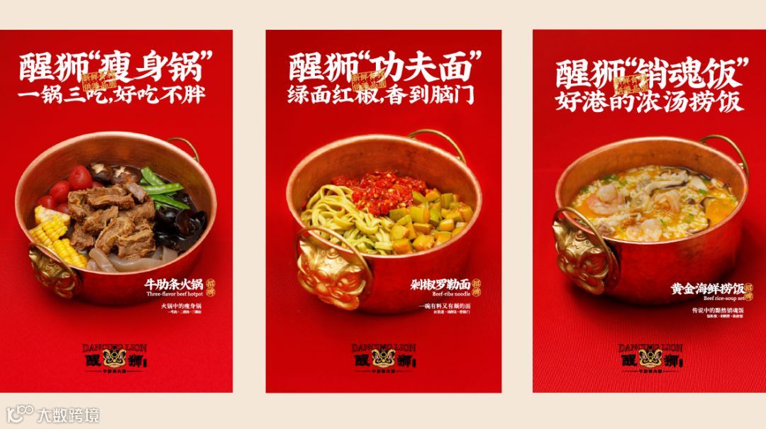 醒狮既简单易懂,好传播,也有清晰的地域认知,品牌命名也就应运而生 —— 醒狮港式牛肋条火锅。