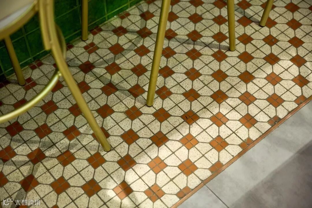 除了门头,一进门的第二大香港文化符号就是这块地面。我们用马赛克的手法做了一个地面符号,为整个门店和品牌形成独特的指示作用。