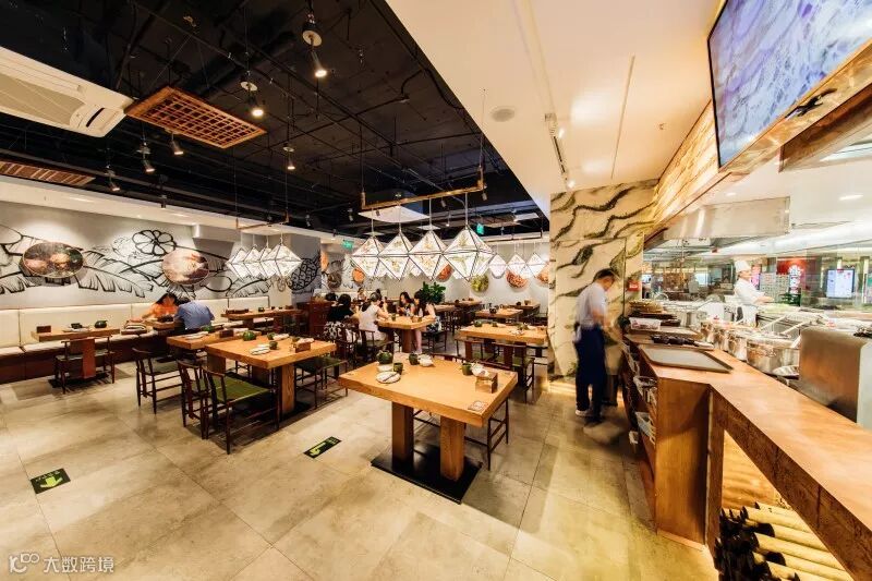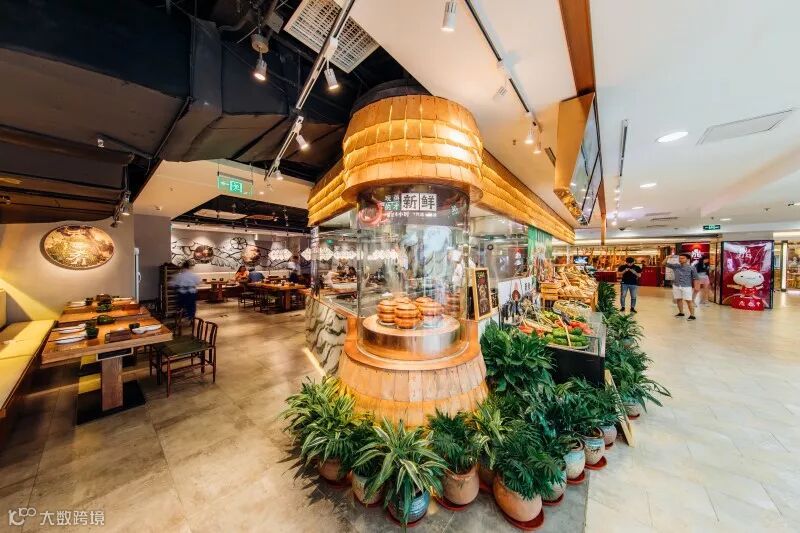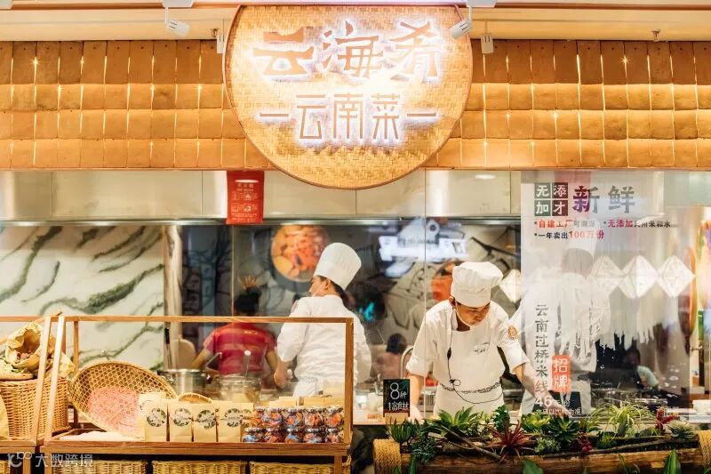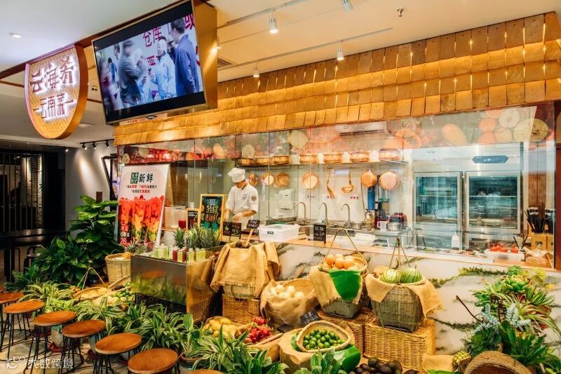 我们从“云海肴新鲜看得见”的角度打造:“穿过市集进餐厅”