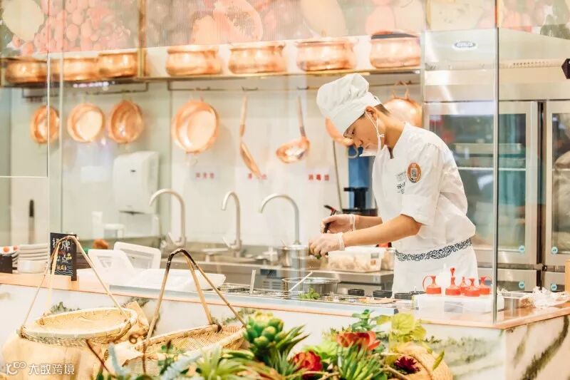 如果说西贝的室内开创了“穿过厨房进餐厅”,强化的心智印象是:莜面粗粮=健康安心=明厨亮灶