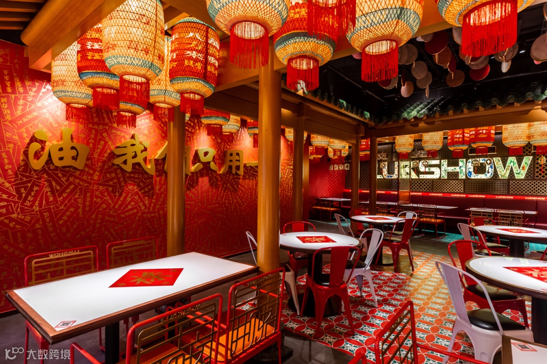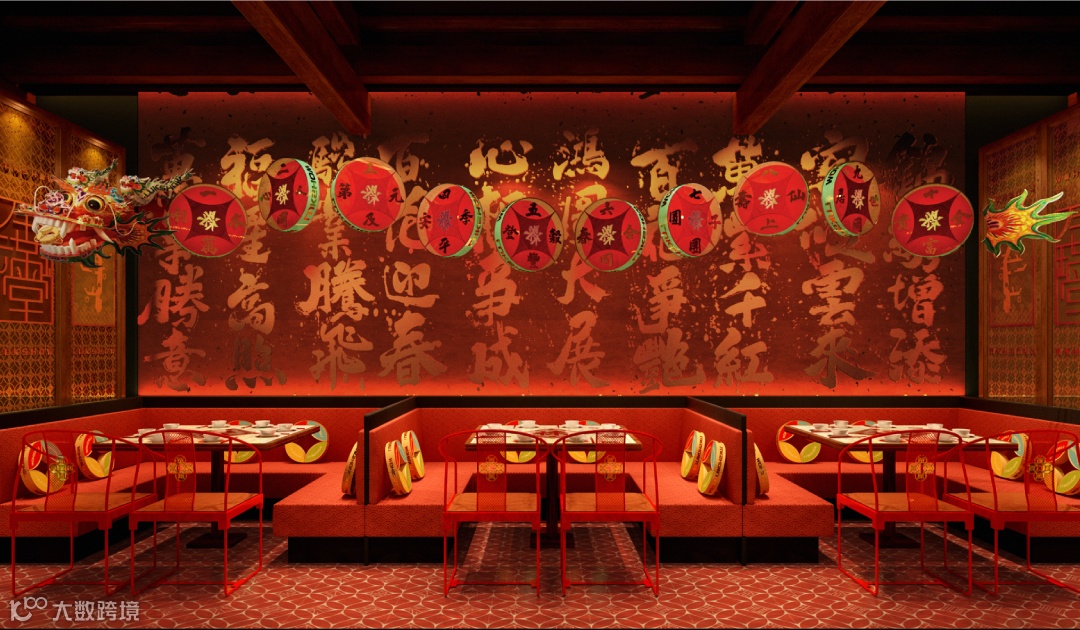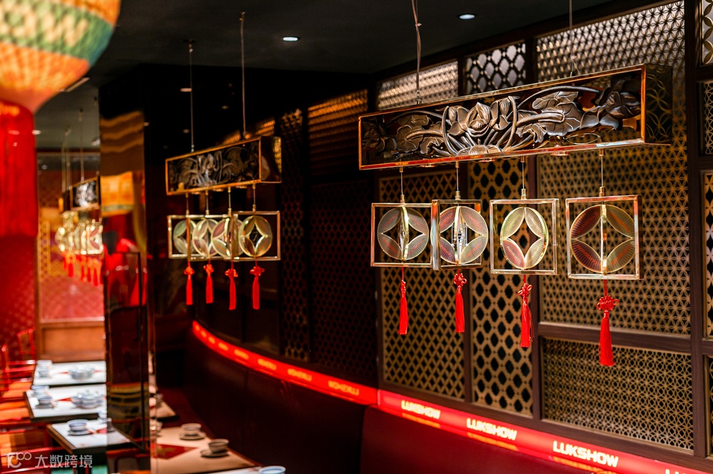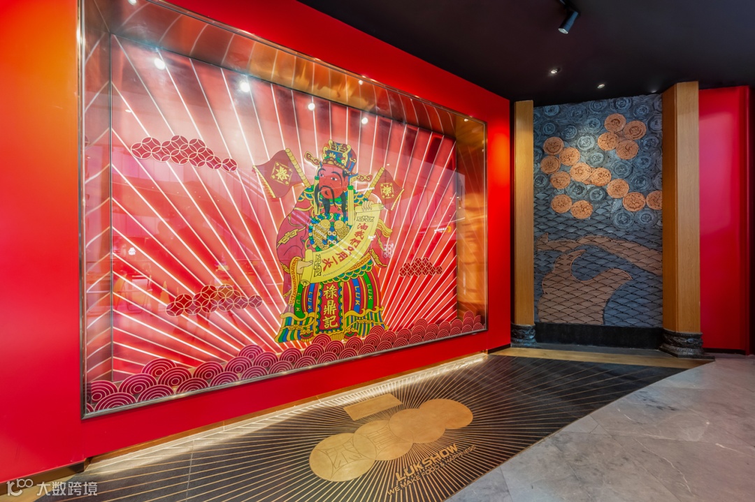 财文化的一副好牌要怎么打?这就十分关键,当下我们看到禄鼎记的门店端,从 1.0 版本的财神文化,到 2.0 版本财神文化 + 春节文化,其开场空间,平面贴图的设计手法,以及亚克力材质软饰的空间表达,的确在前些年餐饮行业低品牌化的阶段吃到了潮流餐饮的红利,但当这个浪潮退下来的时候,它只能依赖于不断的创新,才能持续获得消费者青睐,这对一个品牌来说成本太大了。