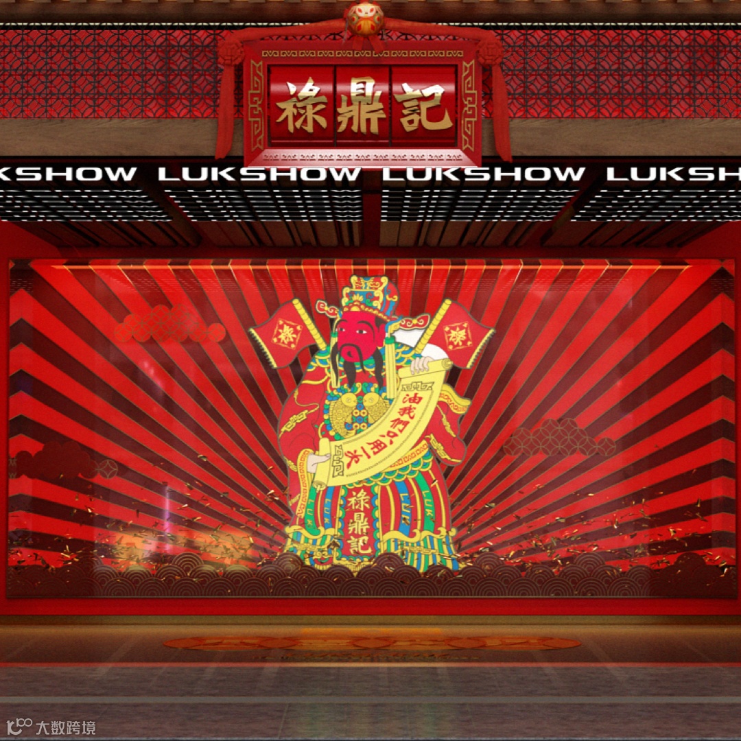 与绝大多数风尚化品牌相比,禄鼎记与国内优秀的平面设计公司“大搞作™ ”合作,在几年内缔造了非常完整、经典的品牌资产,比如我们肉眼可见的财神,铜钱纹,禄字等等。尤其是财神 ip 的提炼,更是让禄鼎记热闹吉祥的品牌文化深入人心,让人们记住了这个“喜庆”的国潮餐饮品牌。